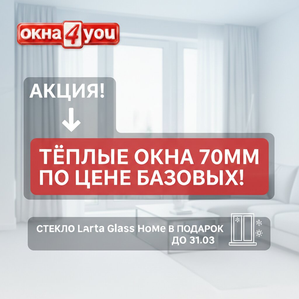 Затеяли ремонт или замену окон? Не переплачивайте за премиум-качество. Только до конца марта в OKNA4YOU: