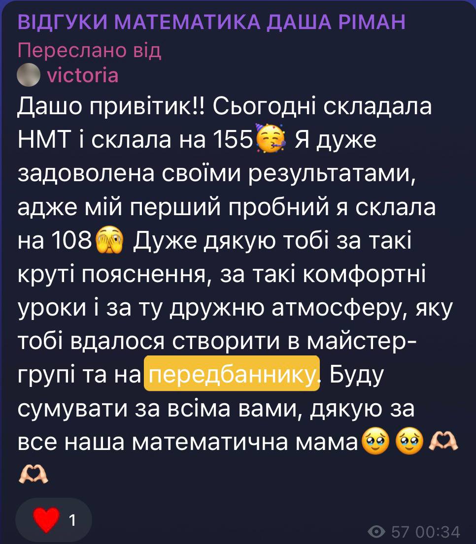 Телеграм канал «Математика НМТ 2BeeSchool | Даша Ріман»