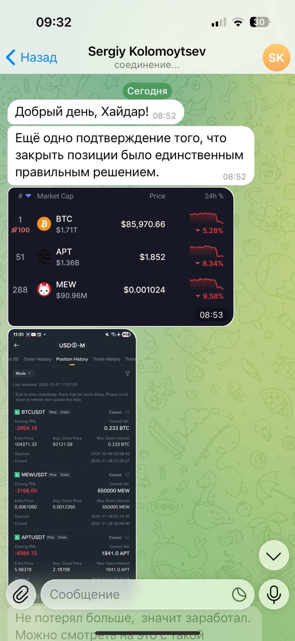 Кто помнит Сергея? Который зафиксировал убыток в 12к$