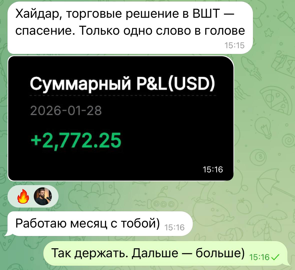 В ВШТ есть возможность повторять за нами торговые решения. Сделки публикую не только я, но и мой коллега. Буду вас ближе с ним знакомить. Очень опытный трейдер, которому есть, что рассказать