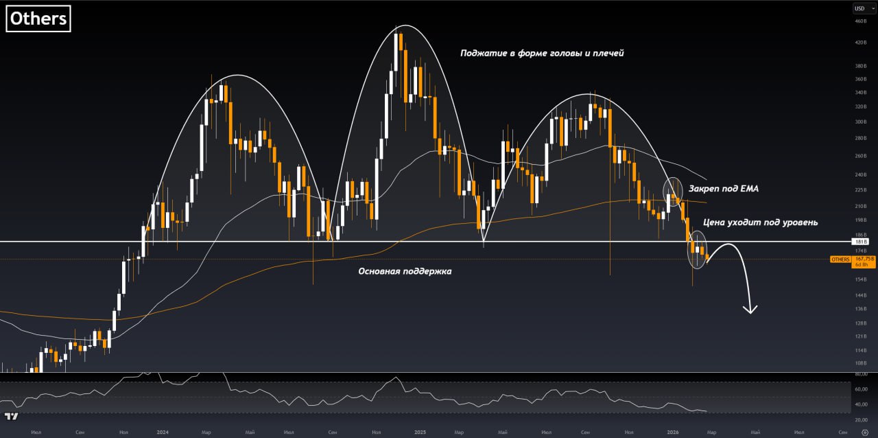 Данная глобальная картинка говорит нам о явном негативном тренде на альтах. При этом тут нет ни единого указателя на разворот вверх ☝️.