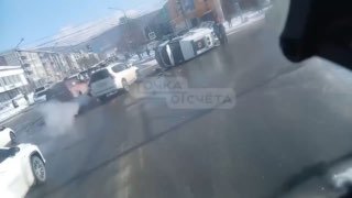 Сегодня в 12:41 на перекрёстке Мира — Пуркаева в Южно-Сахалинске столкнулись внедорожник и карета скорой помощи Углегорской ЦРБ. Удар был таким сильным, что скорая опрокинулась на бок.