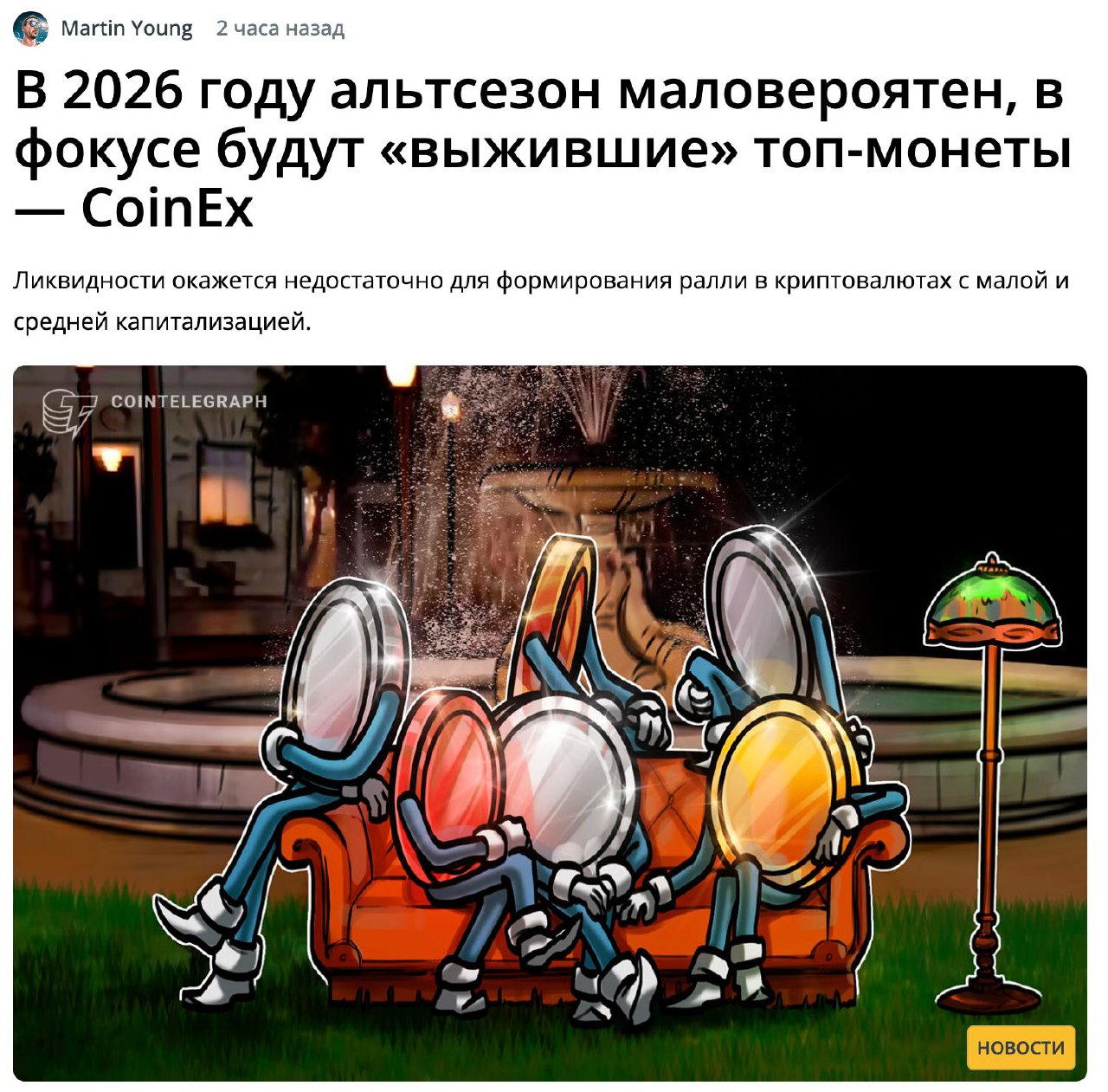 ▪️Аналитик призвал не ждать альтсезон в 2026 году