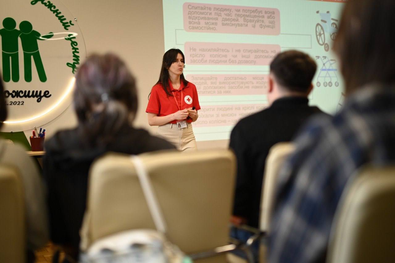 Фахівчиня напряму фізичної реабілітації та соціальної адаптації Волинської обласної організації Українського Червоного Хреста провела сесію на тему «Комунікація з людьми з інвалідністю». Учасниками заходу стали мешканці громади, серед яких – люди з інвалідністю, молодь, ветерани та представники органів місцевого самоврядування. Вони ознайомилися з принципами коректної комунікації, а також відпрацювали практичні навички: