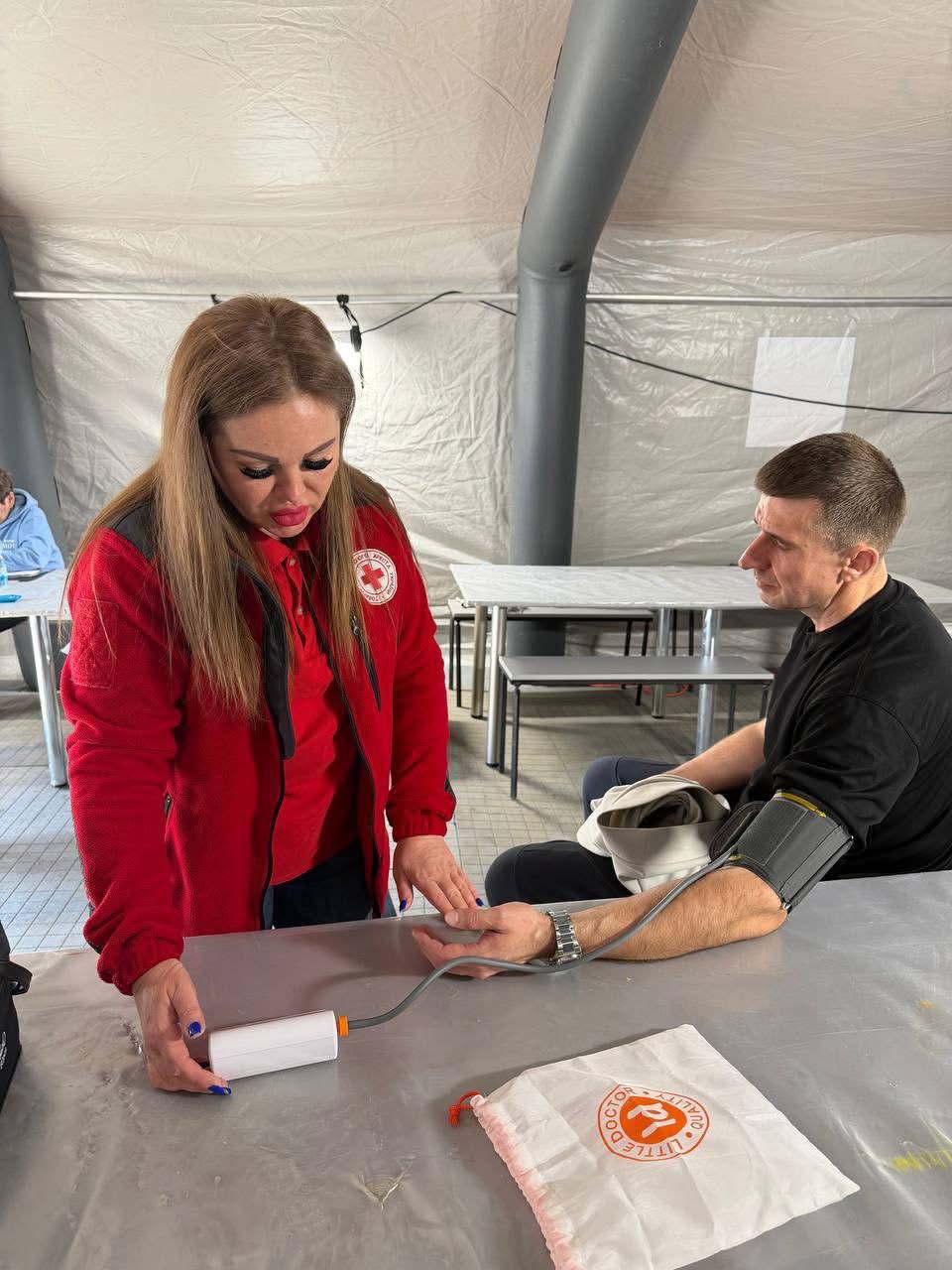 Фахівці обстежують стан здоров’я, вимірюють артеріальний тиск; визначають рівень глюкози у крові та оксигенації;