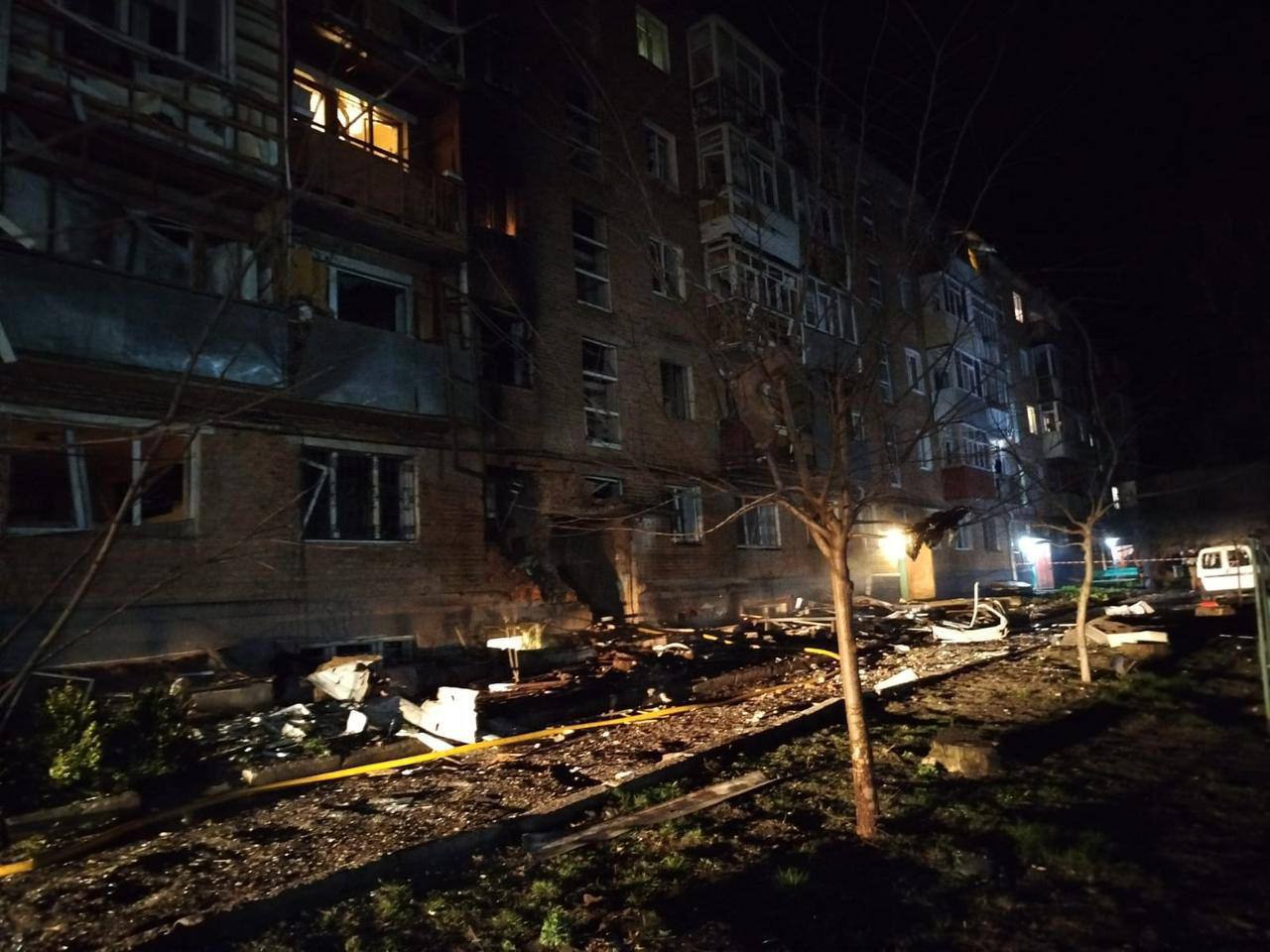 За інформацією ДСНС України, цієї ночі було завдано два російські удари по житловому сектору Сум. Пошкоджено багатоповерхові будинки, виникли пожежі, проведено евакуацію мешканців. Загалом пошкоджено 11 багатоквартирних будинків, дитячий садок і близько 10 автомобілів. Постраждали 5 людей, серед яких дитина.