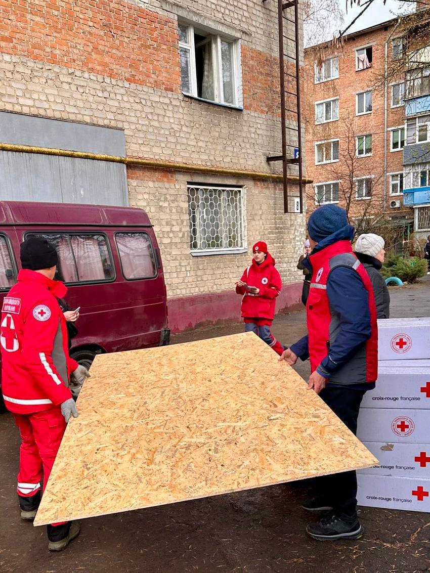 Також Український Червоний Хрест організував видачу будівельних матеріалів для родин, чиє житло зазнало пошкоджень, а також мешканців інформують про ризики, пов’язані із залишками вибухонебезпечних предметів.