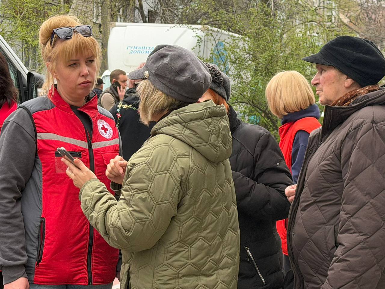 На іншій локації 5 пораненим волонтери надали першу допомогу, 2 постраждалих евакуювали до лікарні. На місці проводилась видача гуманітарної допомоги у вигляді OSB-плит людям, чиї домівки зазнали пошкоджень.
