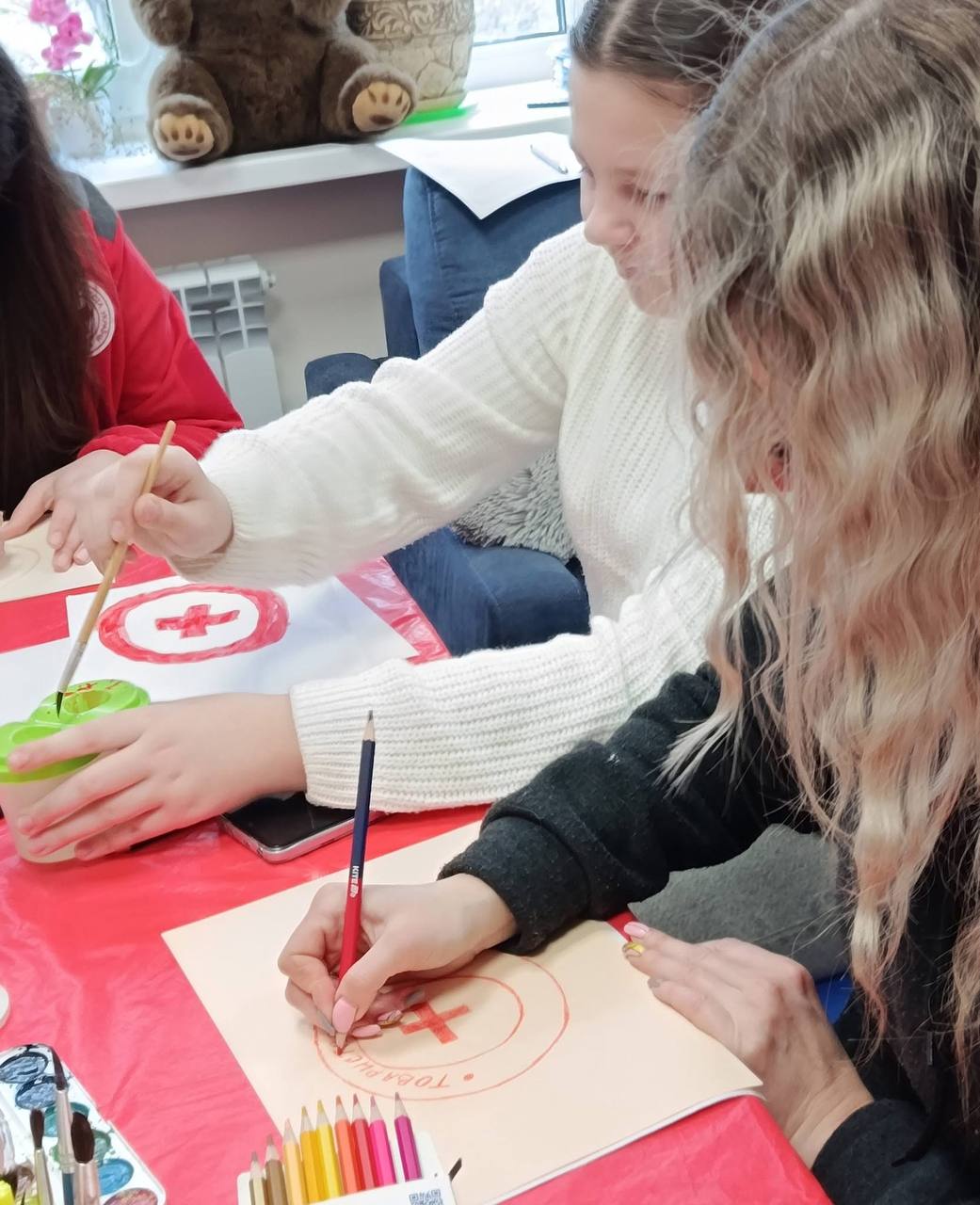 Діти разом із батьками створювали малюнки до 108-ї річниці організації, передаючи через них свої емоції, бачення добра та допомоги.