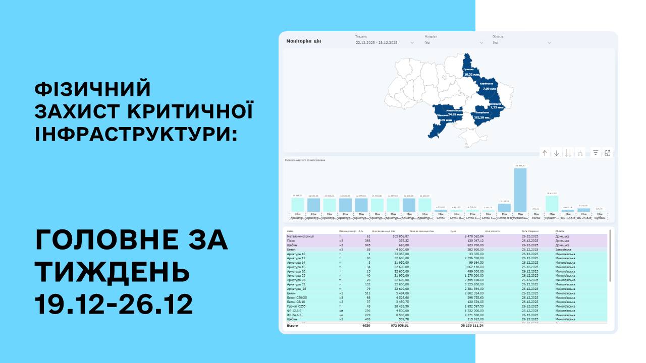🗣Щотижневий дайджест: моніторинг закупівель будівельних матеріалів для зведення фізичного захисту на обʼєктах критичної інфраструктури