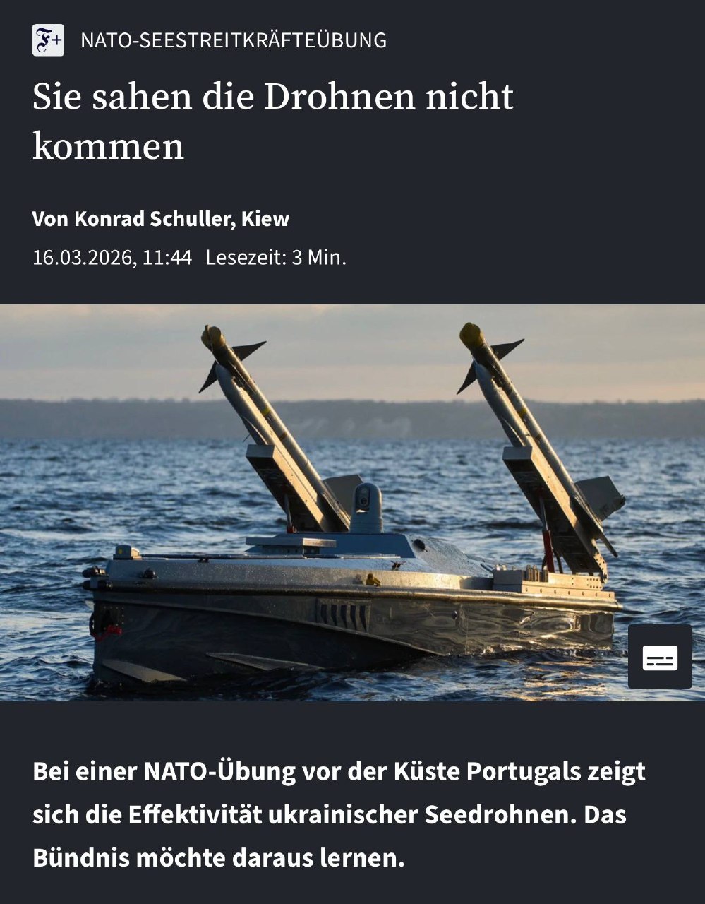 Під час морських навчань НАТО Україна в ролі умовного противника змогла «потопити» один фрегат союзників і виграла всі інші бої, — FAZ.