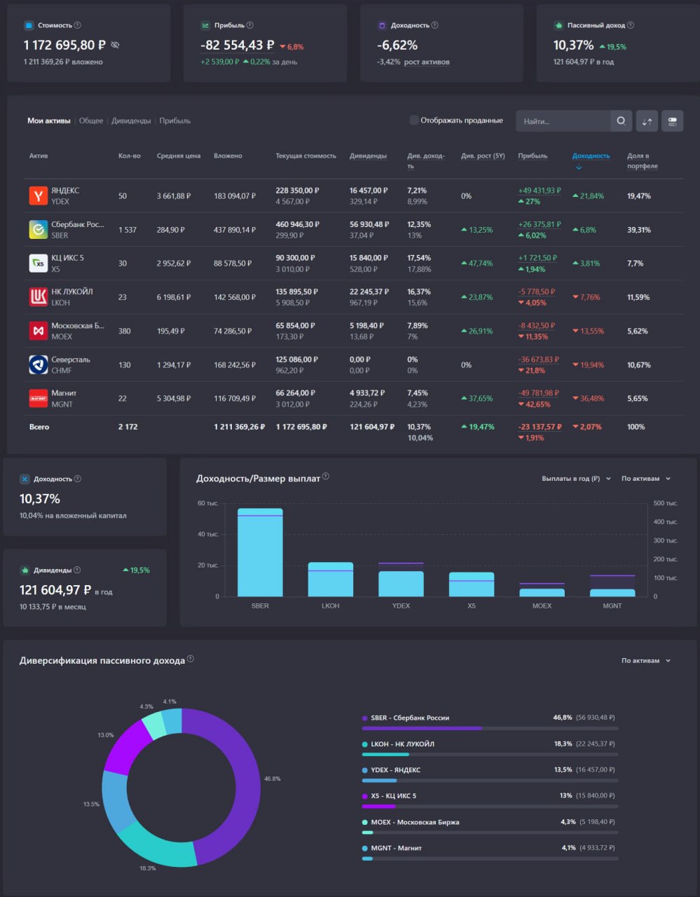 "Мне важен СТАБИЛЬНЫЙ пассивный доход от портфеля в виде дивидендов. Из-за этого портфель составляют лишь дивидендные аристократы: Сбер, лукойл, Северсталь.