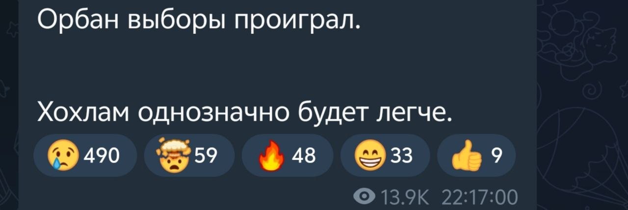 "Кремль высказался, и Пекин высказался. Я благодарю их за уважительное принятие решения венгерского электората, венгерского народа, и они также открыты для прагматичного сотрудничества, как и Венгрия, потому что география есть география", - прокомментировал он отношения с Москвой и Пекином.