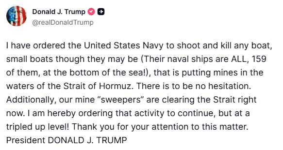 "Учитывая тот факт, что правительство Ирана находится в состоянии серьезного раскола, что неудивительно, а также по просьбе фельдмаршала Асима Мунира и премьер-министра Пакистана Шехбаза Шарифа, нам было предложено приостановить наступление на Иран до тех пор, пока их лидеры и представители не выработают единое предложение.