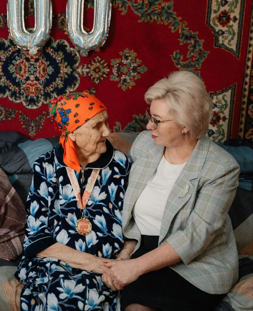 И сегодня самые душевные слова признательности и благодарности за жизненный путь адресовала жительнице с. Весеннее, труженице тыла Анне Владимировне Ильиной, которая отмечает свое 100-летие!