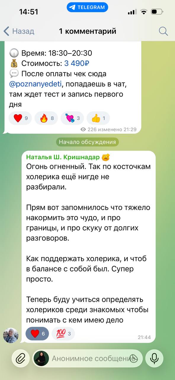 💬 После оплаты чек сюда @poznanyedeti, попадаешь в чат, там ждет тест и я вас жду!