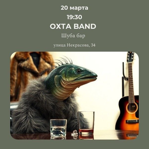 Итак, ОХТА BAND в пятницу, 20 марта, даёт концерт в "Шуба Баре"!