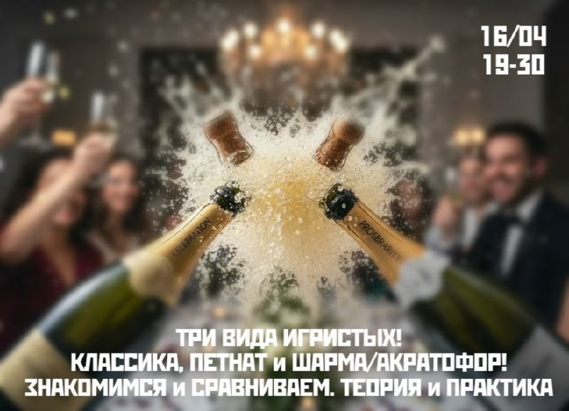 16/04 (ЧЕТВЕРГ) в 19-30 Игристые вина: от теории к практике. Основные методы производства, специфика и различия.