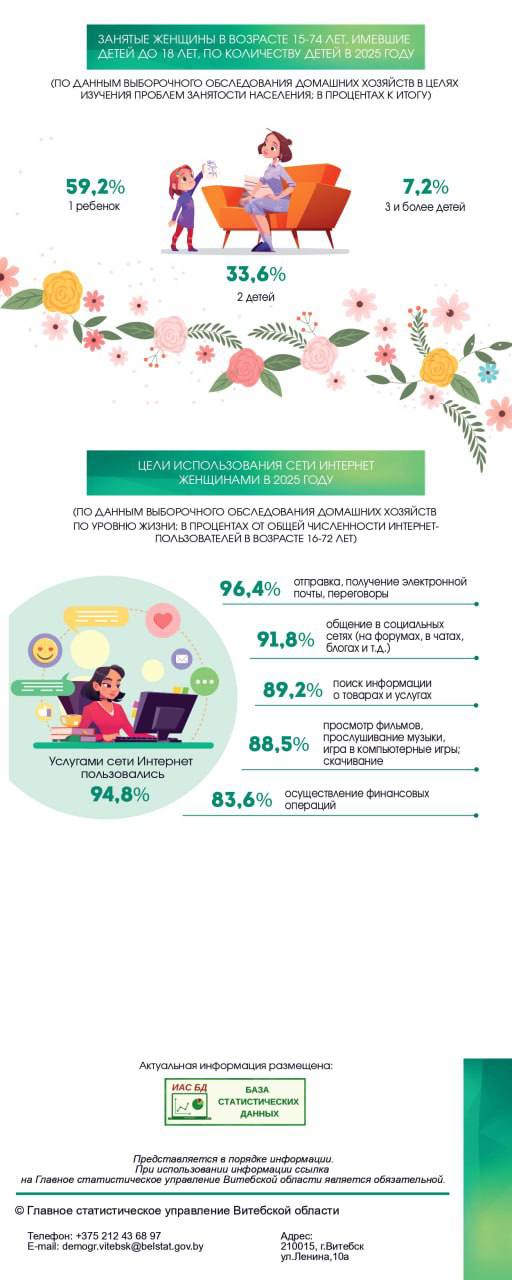 🌷Ко Дню женщин Главное статистическое управление Витебской области подготовило обзор