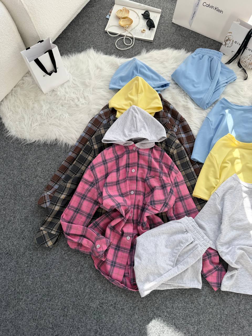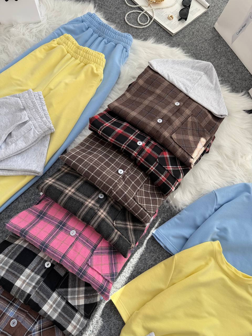 Стильна та зручна сорочка в клітинку у дуєті з штанами та футболкою незамінна річ жіночого гардеробу, костюм ідеально підійде для прогулянок та повсякденних образів,сорочка та штани відмінної якості та пошиття.👍