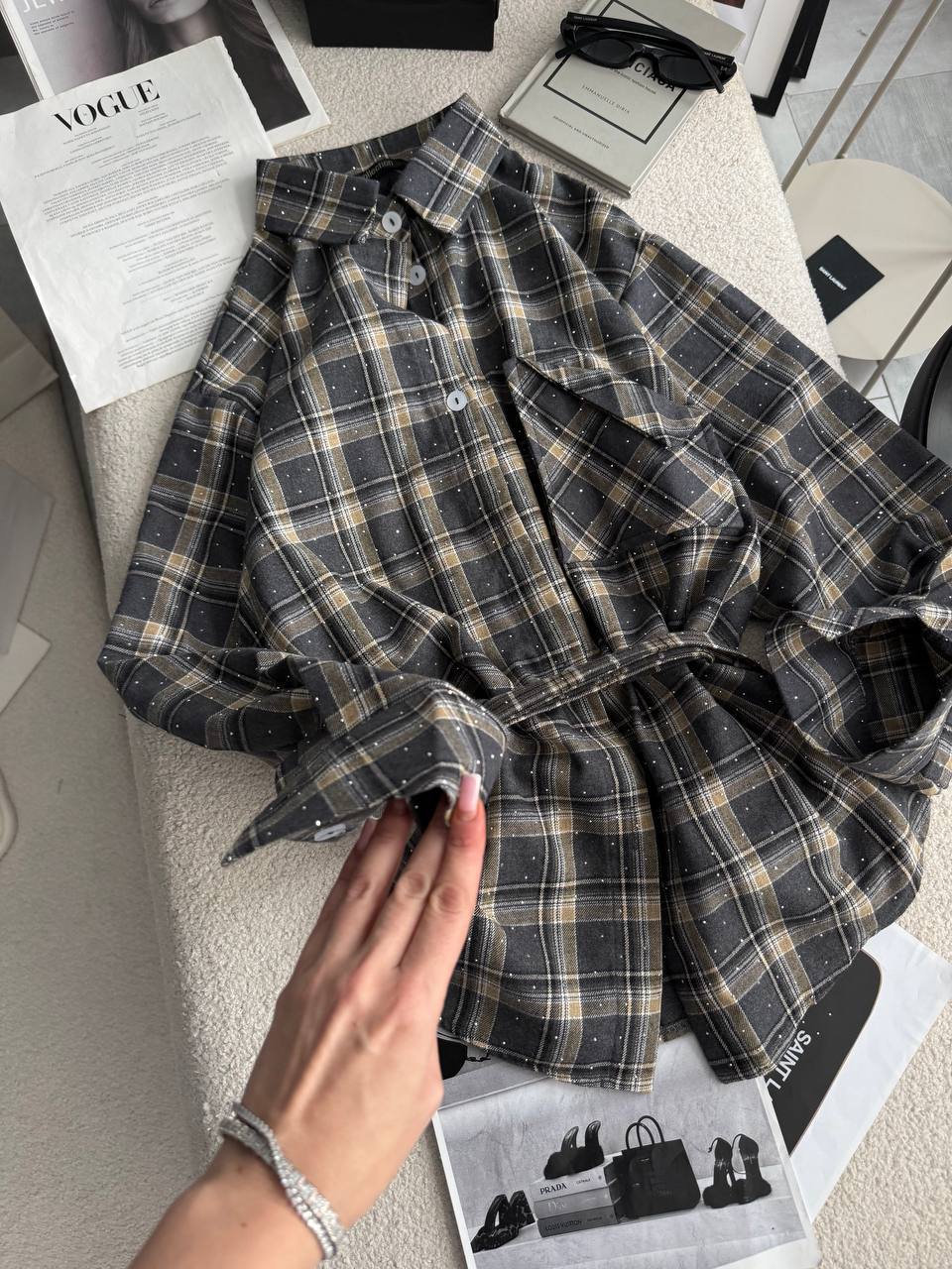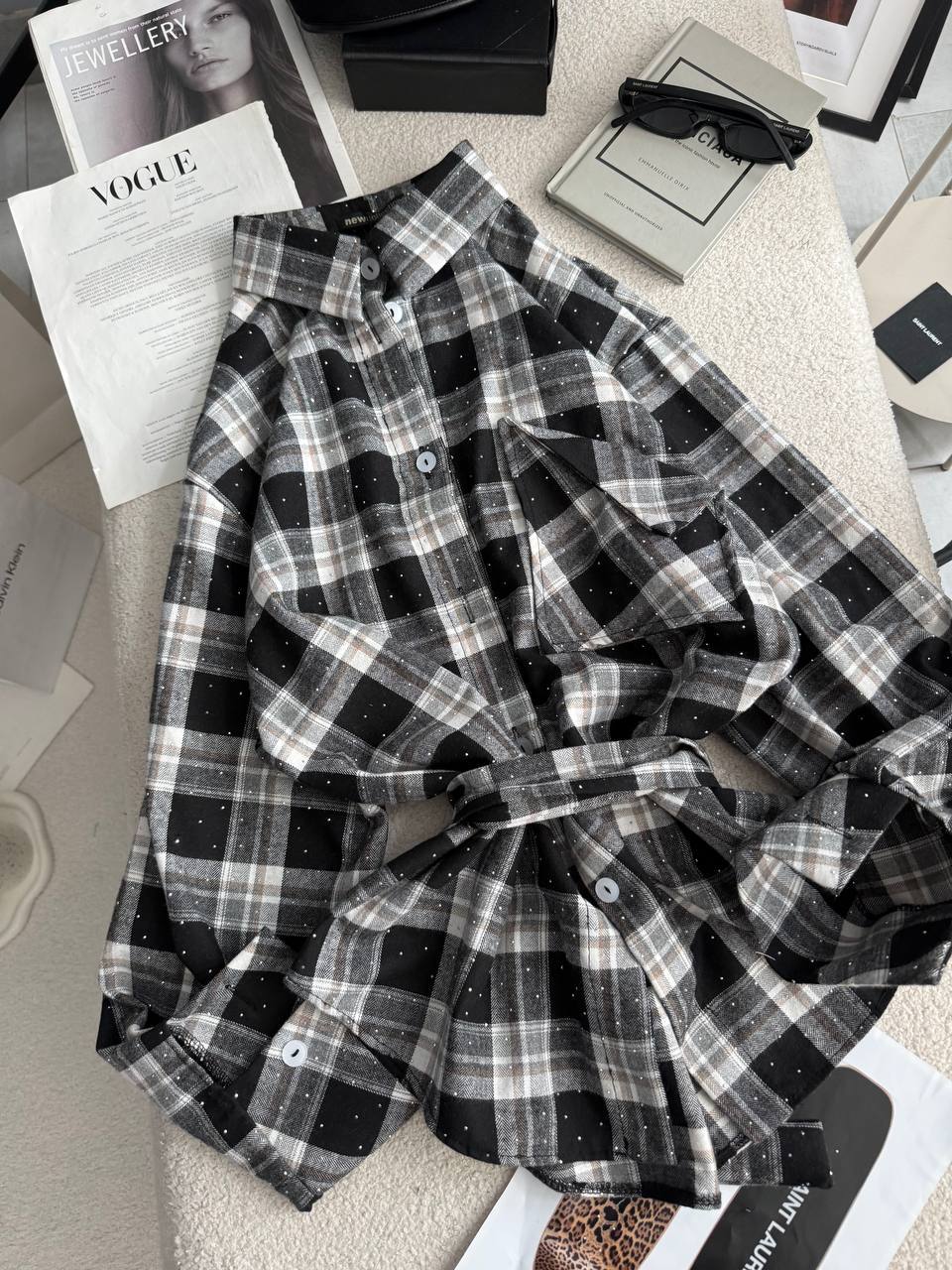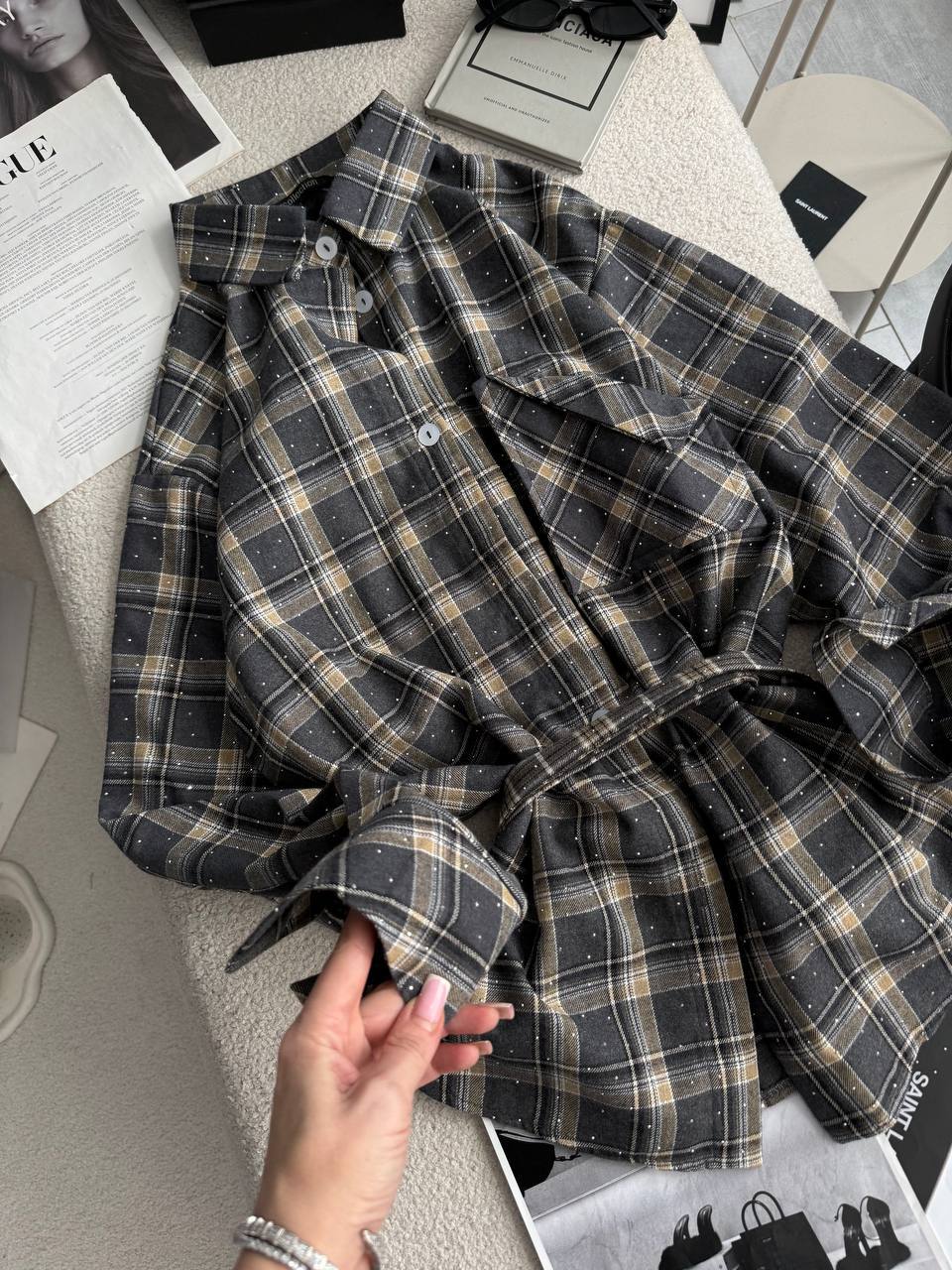 Сорочка зі стразами, в якій ти сяятимеш як сонечко, всі погляди будуть твої, оригінальна кишеня не як у всіх, поясок у комплекті.