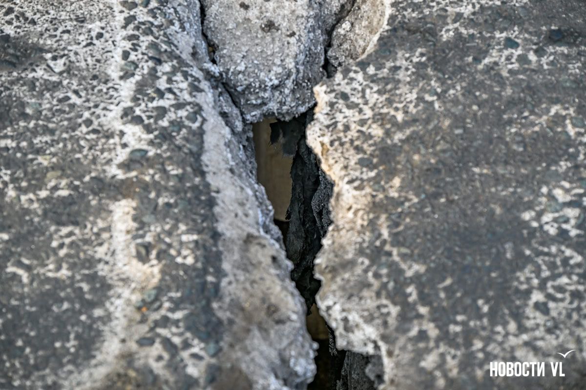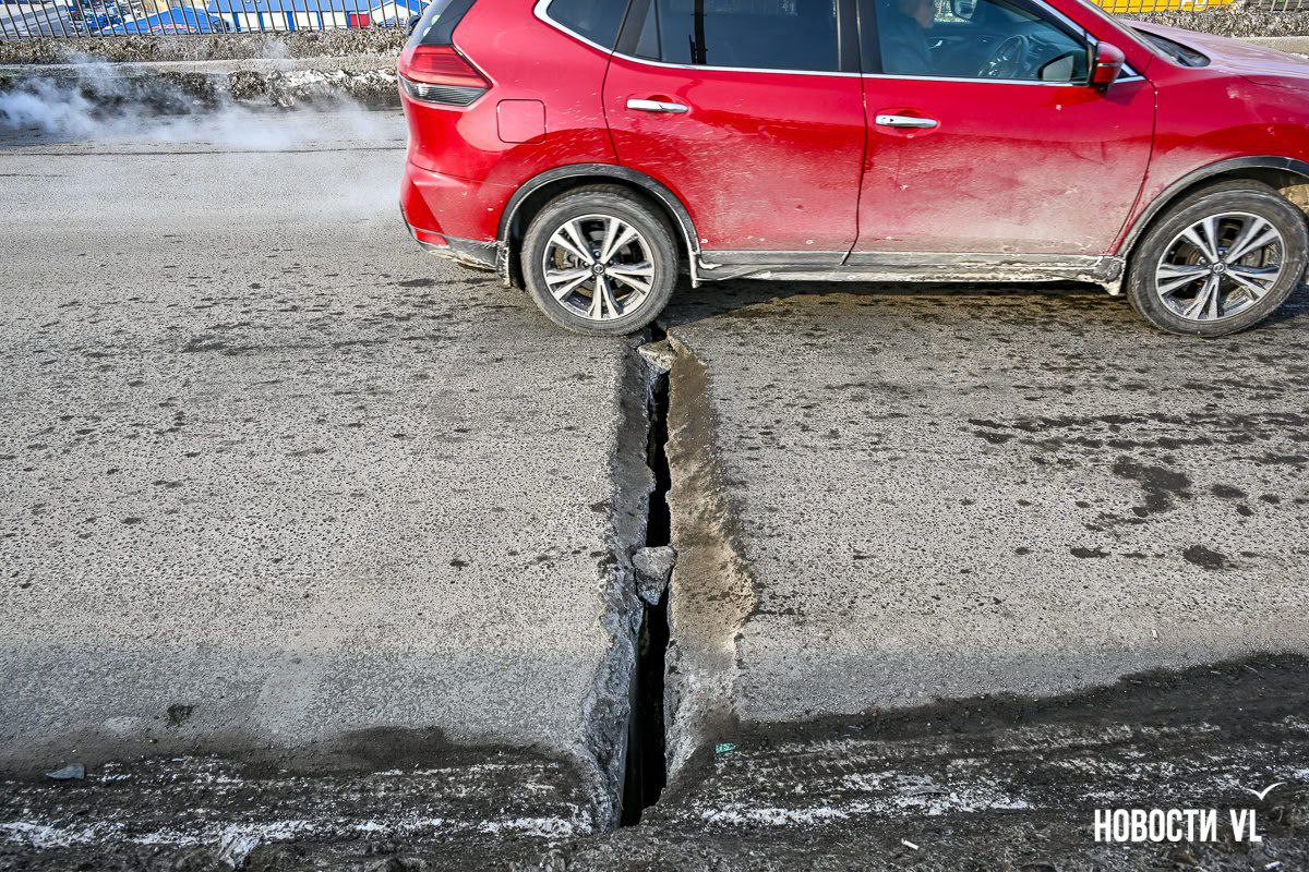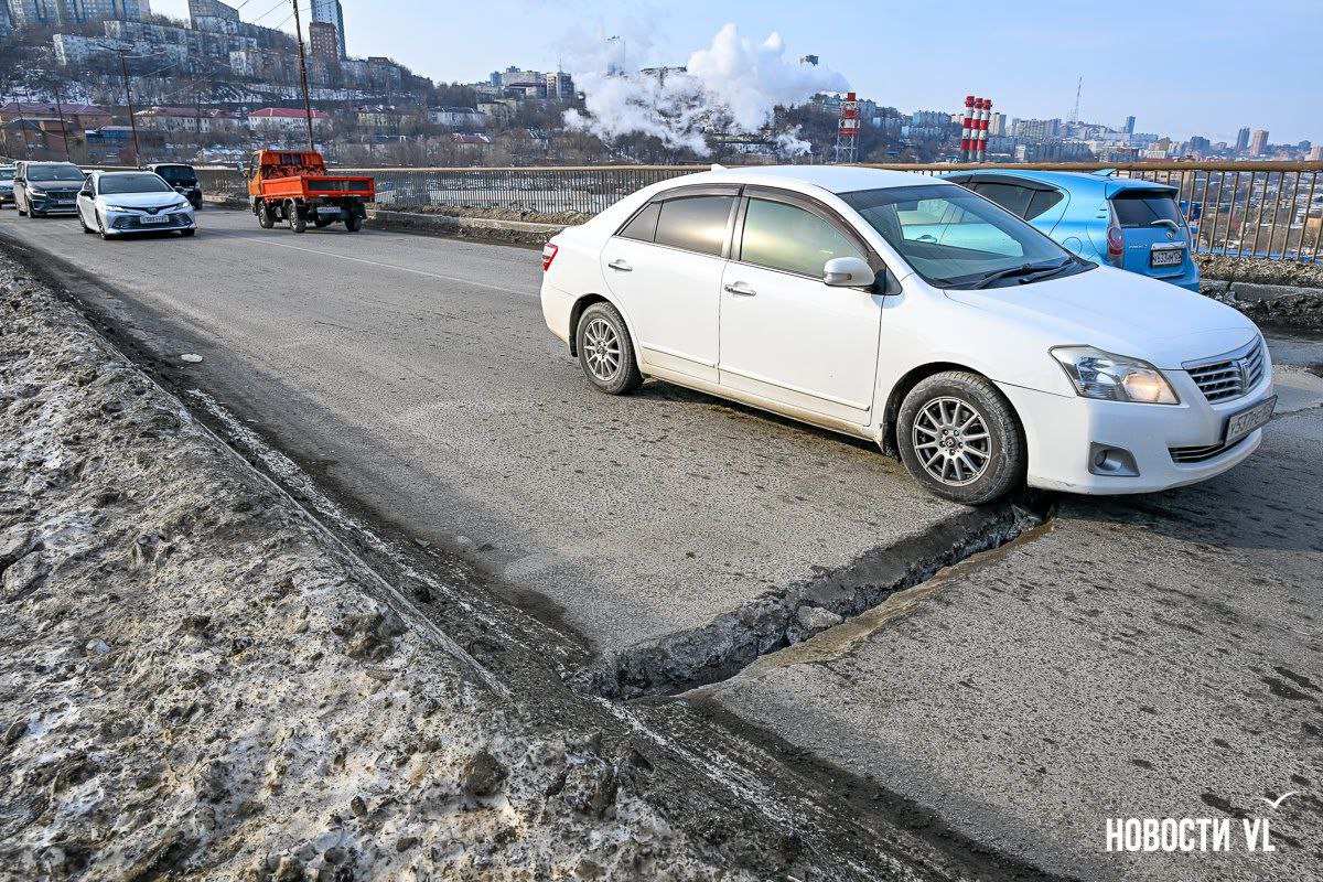 На Рудневском мосту снова разошлись деформационные швы. Только, в отличие от других подобных сооружений, сквозь образовавшиеся отверстия с 30-метровой высоты можно в подробностях разглядеть улицу Снеговую. Администрация Владивостока уверяет, что для легкового транспорта проезд безопасен, а трещины заделают с наступлением положительных температур. Тем временем сквозные дыры собирают на мосту ежедневные пробки.