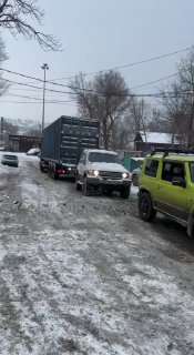 😱Подъемы и спуски во Владивостоке стали непреодолимыми. Например, автомобили не могут подняться по ул. Лазо, буксуют с Пушкинской на Суханова.