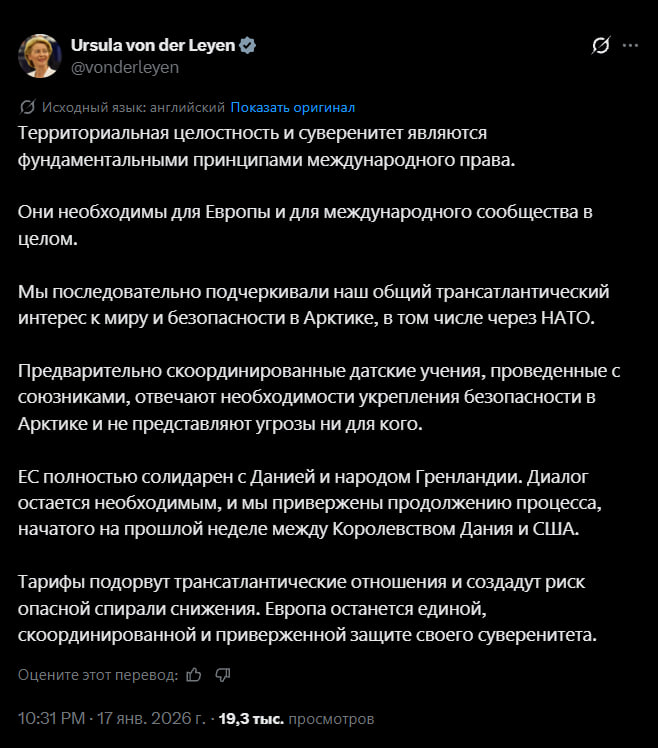 Начиная с 1 февраля 2026 года, со упомянутых стран (Дания, Норвегия, Швеция, Франция, Германия, Соединенное Королевство, Нидерланды и Финляндия) будет взиматься 10%-ный тариф на все товары, отправляемые в Соединенные Штаты Америки.