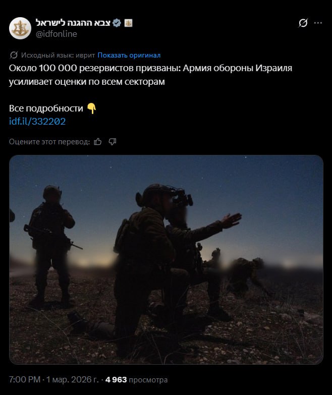 Израильтяне объявили о новой волне налёта истребительной авиации по целям на территории Ирана.