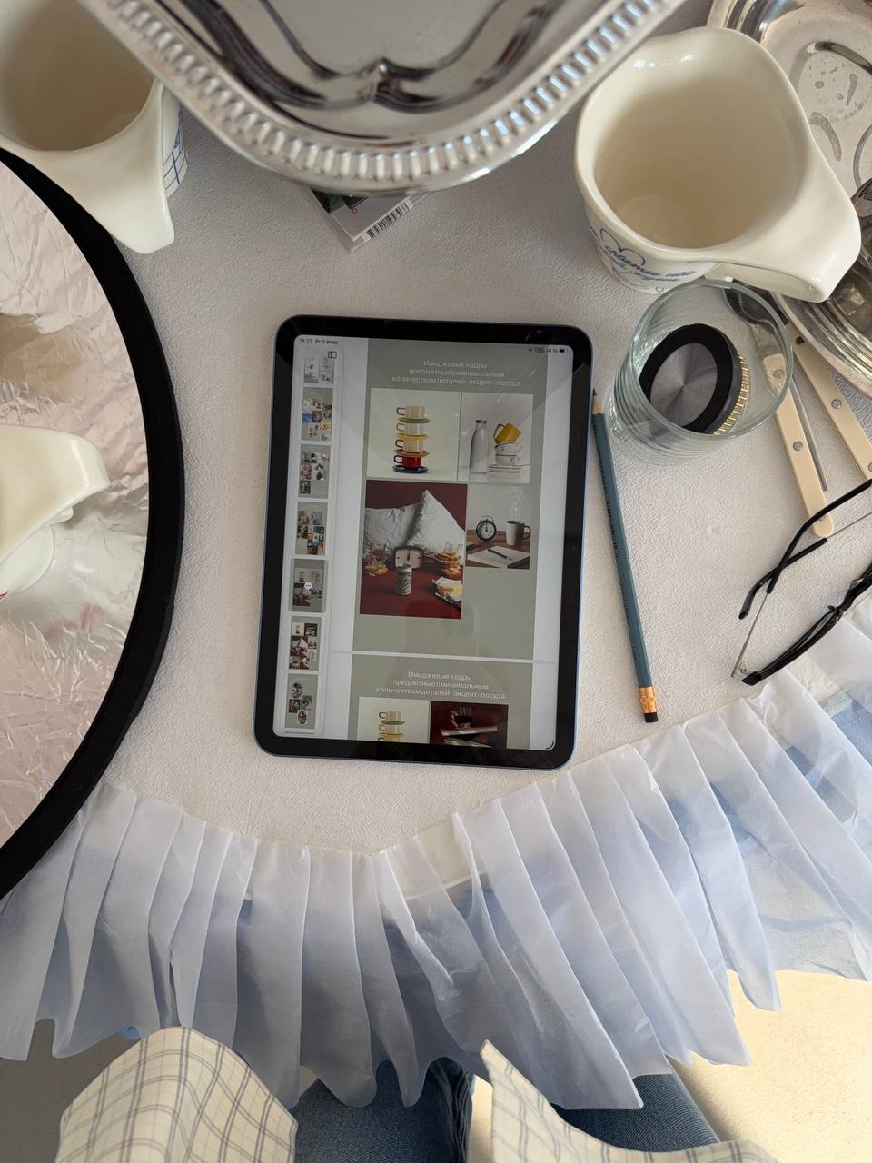 Мы начинаем с подбора вдохновения, поиска реквизита, закупки необходимого и заканчиваем встречей на площадке, где много часов мы готовим декорации в ручную, выставляем композицию, меняем, выставляем снова.