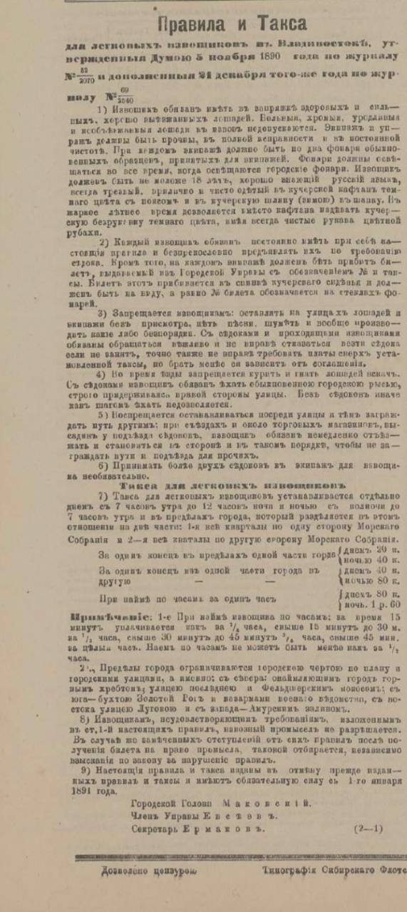 Действующие тарифы во Владивостоке: