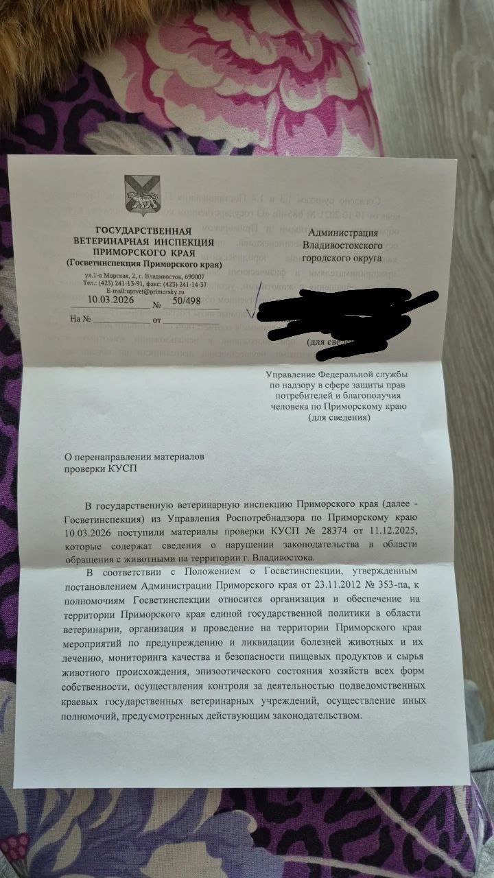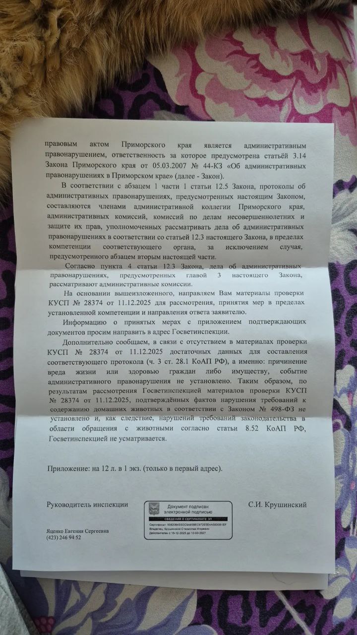 Государственная ветеринарная инспекция Приморского края не видит оснований для привлечения к ответственности. Продолжение эпопеи ада на Кузнецова д.80