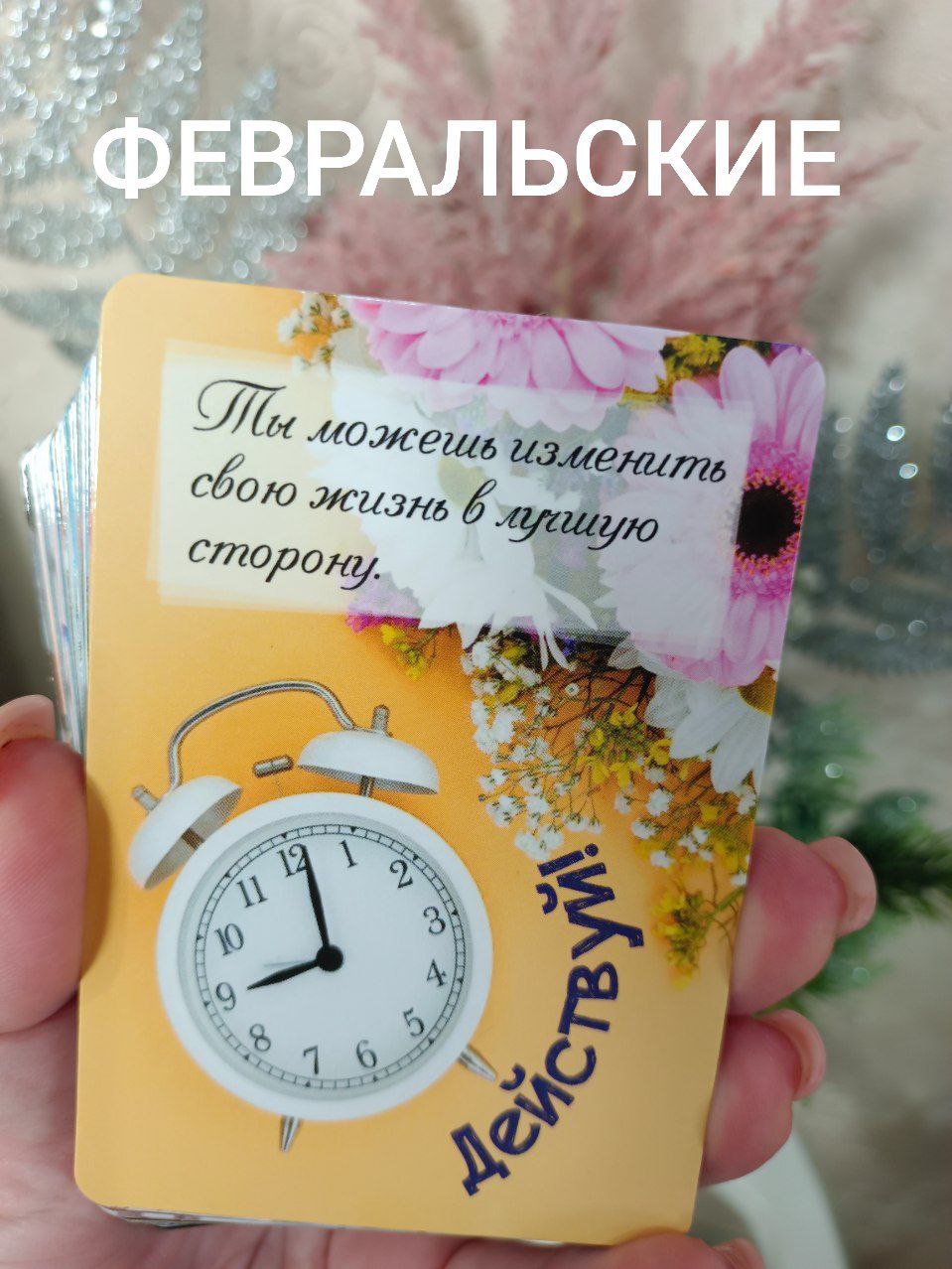 Я задавала вопрос "Какая основная подсказка нужна людям, рождённым в *месяц* для того, чтобы прожить февраль благостно и продуктивно" и интуитивно выбирала колоду, а в ней карту.