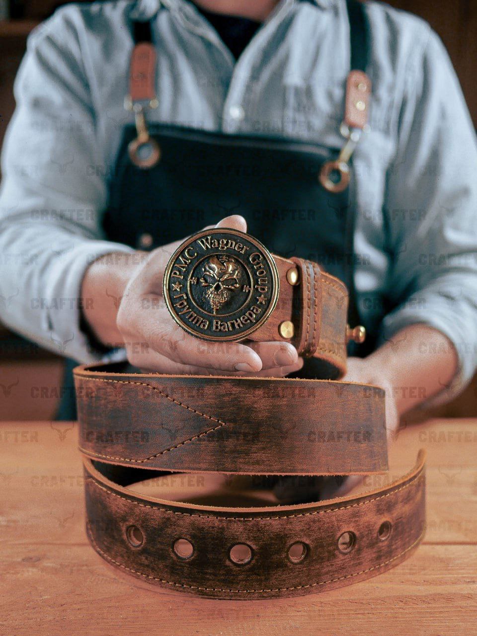 Символика Вагнера, премиальная кожа и ручная работа — мой ремень подчеркнет вашу преданность делу и историю службы. Надежный аксессуар, который будет с вами в любой ситуации: на работе, в поле или в городе.