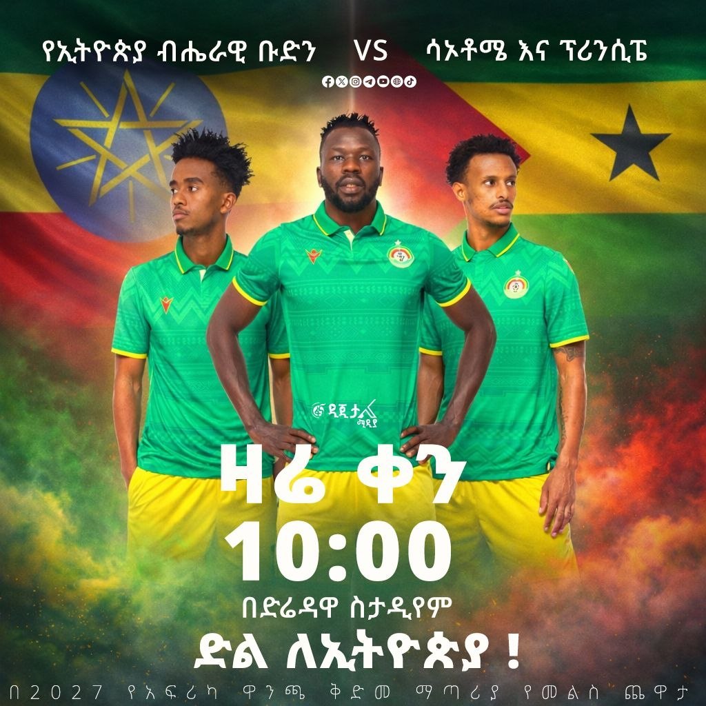 አዲስ አበባ፣ መጋቢት 22፣ 2018 (ኤፍ ኤም ሲ) በ2027 የአፍሪካ ዋንጫ ቅድመ ማጣሪያ የመልስ ጨዋታ የኢትዮጵያ ብሔራዊ ቡድን ሳኦቶሜ እና ፕሪንሲፔን 1 ለ 0 አሸንፏል፡፡
