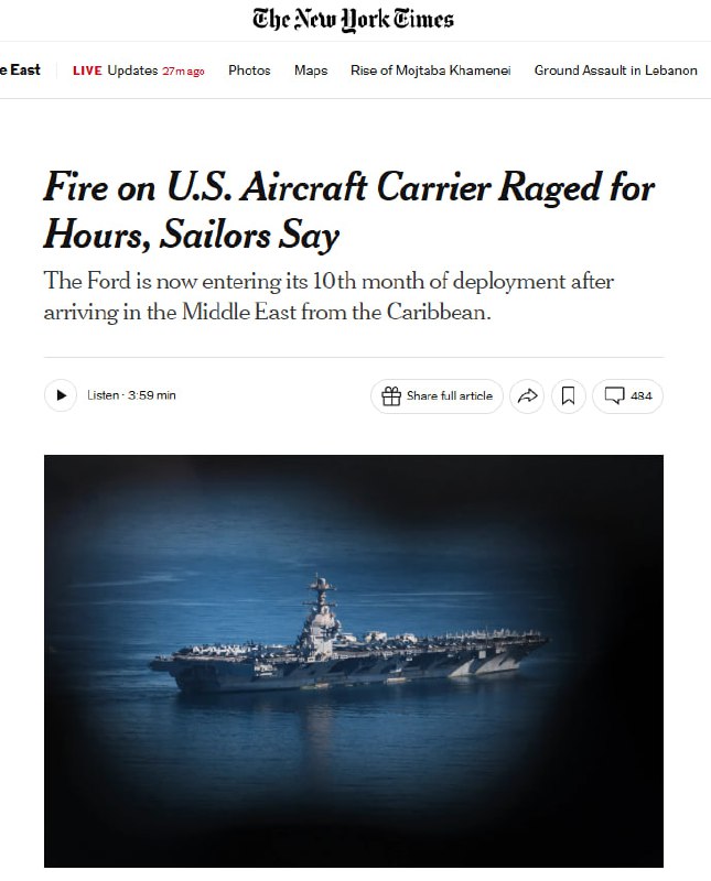 Из Карибского бассейна авианосец срочно направился на Ближний Восток для участия в американо-израильской войне против Ирана, которая продолжается уже третью неделю."