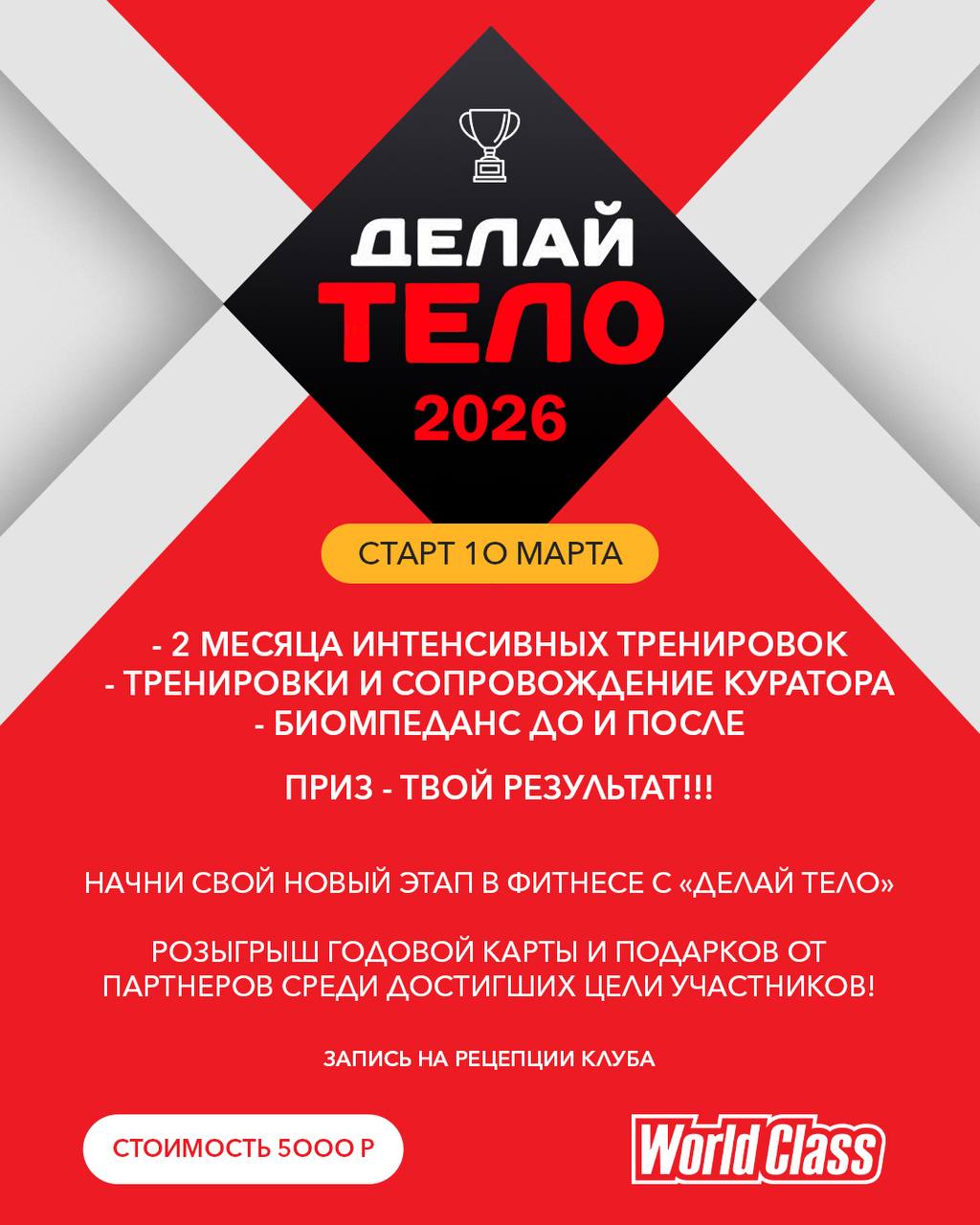 И конечно, стать участником конкурса на самый лучший результат и выиграть годовую безлимитную клубную карту на посещение клуба World Class и подарки от наших партнеров 🎁