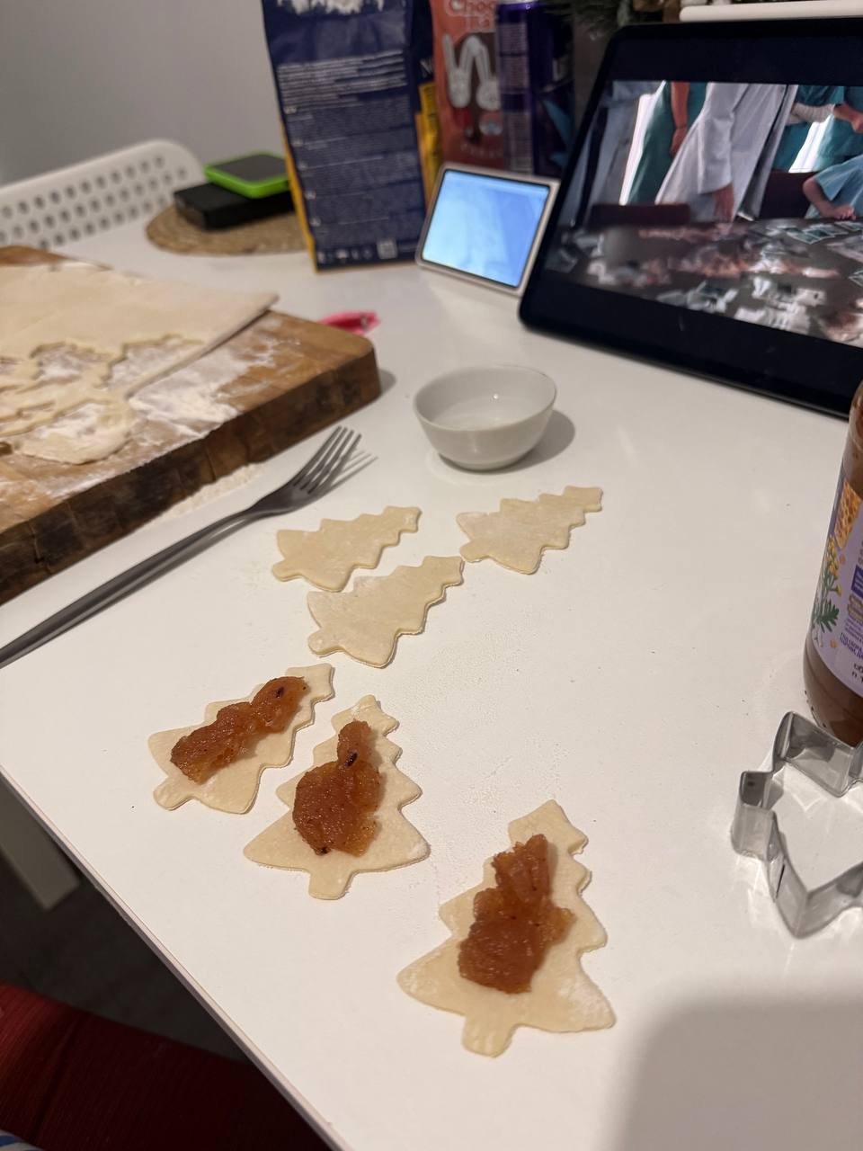 Помните был тренд на пластилиновые свидания? У нас получается пирожковое 🤣 Елочки - это мои пирожки с джемом из яблок и корицы А прямоугольные - Никитины, с перетертой малиной с сахаром