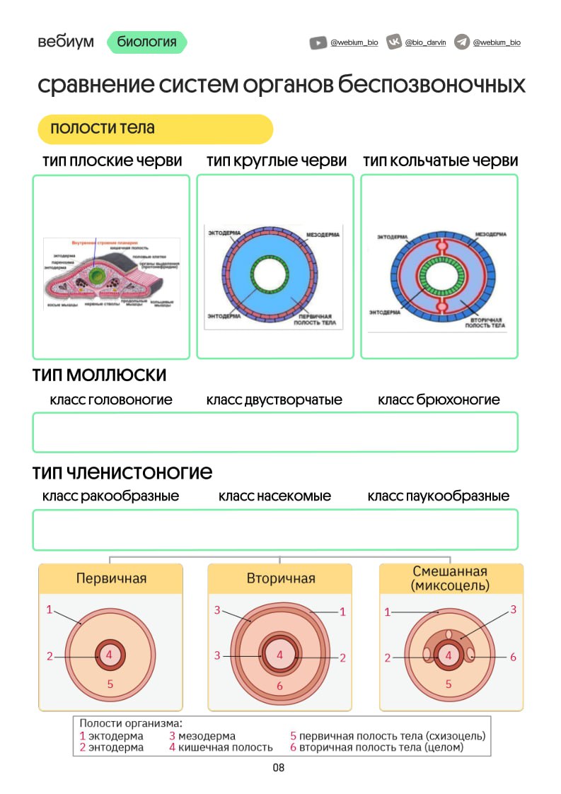 ➡️ Полости тела: псевдоцель, целом, миксоцель - также постоянно путают животных с разными полостями