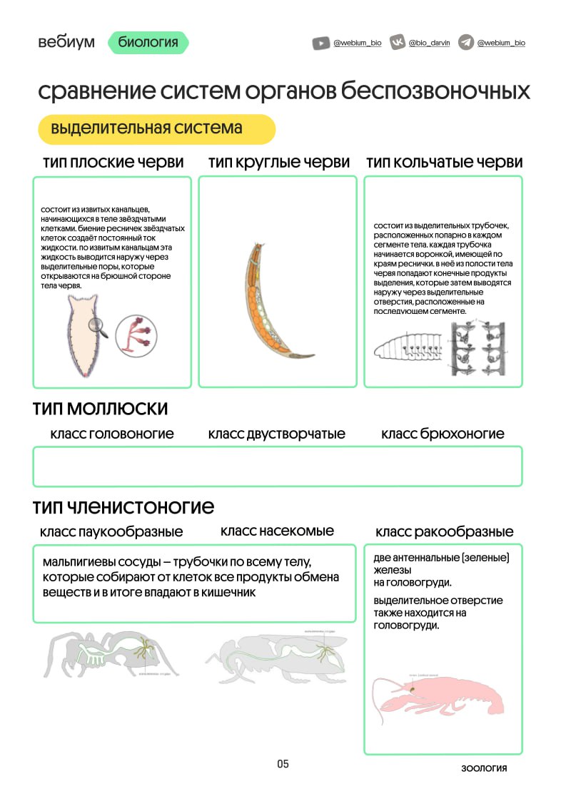 ➡️ Протонефридии, метанефридии, мальпигиевы сосуды - многие путают, у кого какая выделительная система