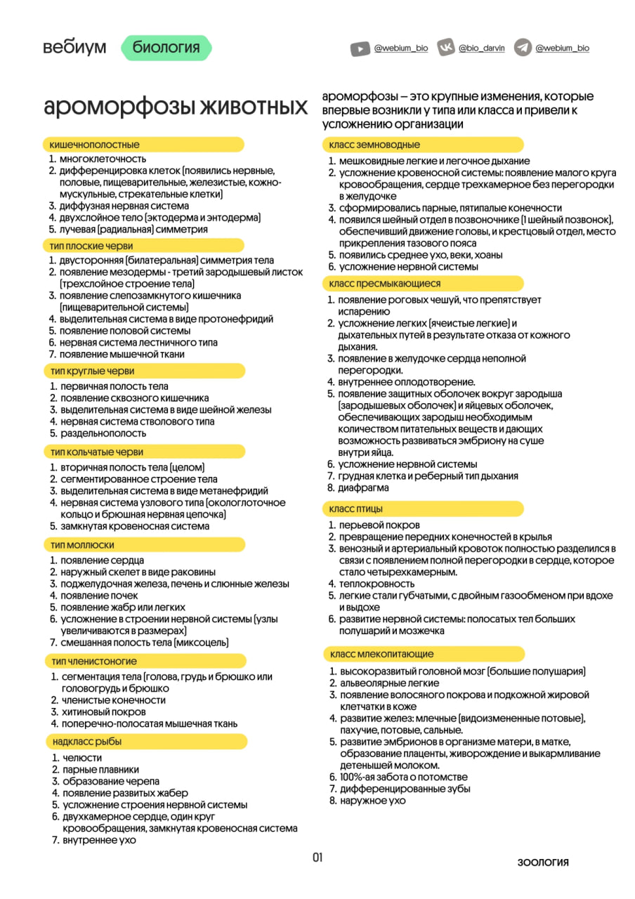 или БЕСПЛАТНЫЙ КУРС по сравнению систем органов беспозвоночных животных 😌