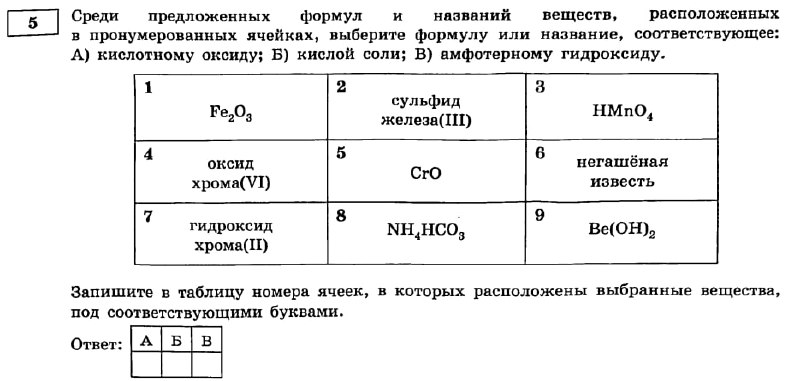 3) гидроксид хрома(III) - Cr(OH)₃ - амфотерный гидроксид