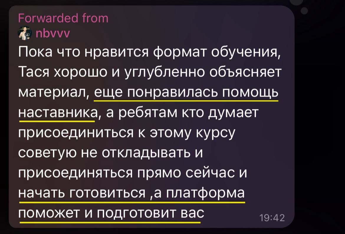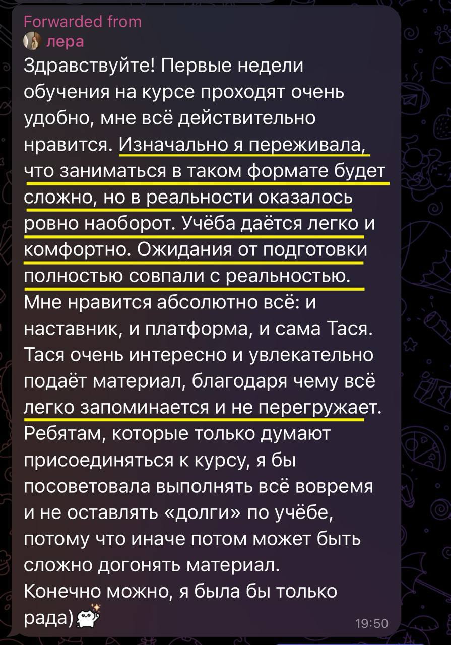 поверь, каждый новый поток курса мы общаемся с учениками и получаем такие ответы. прикреплю скрины с некоторыми из них. вдохновляйся!! ❤