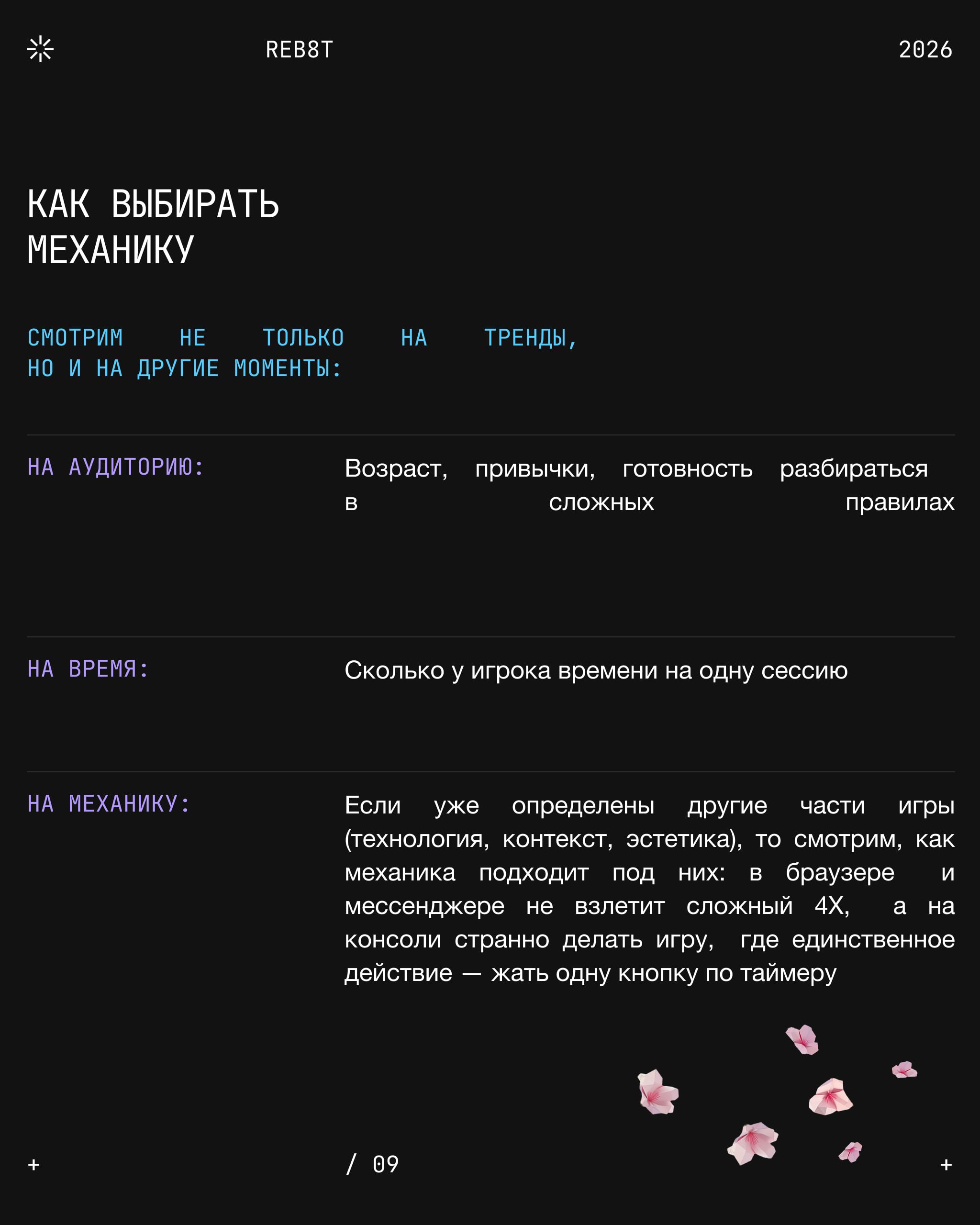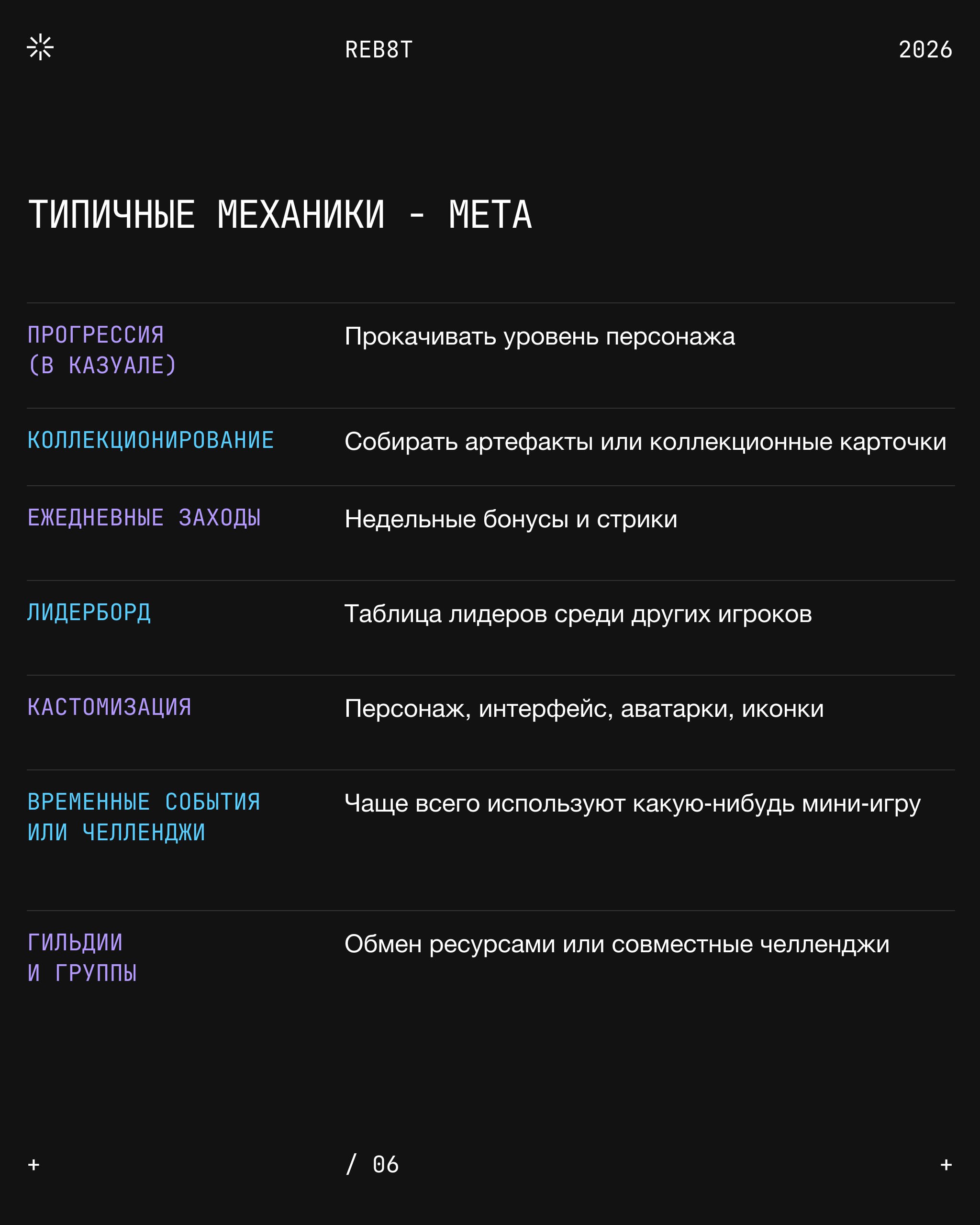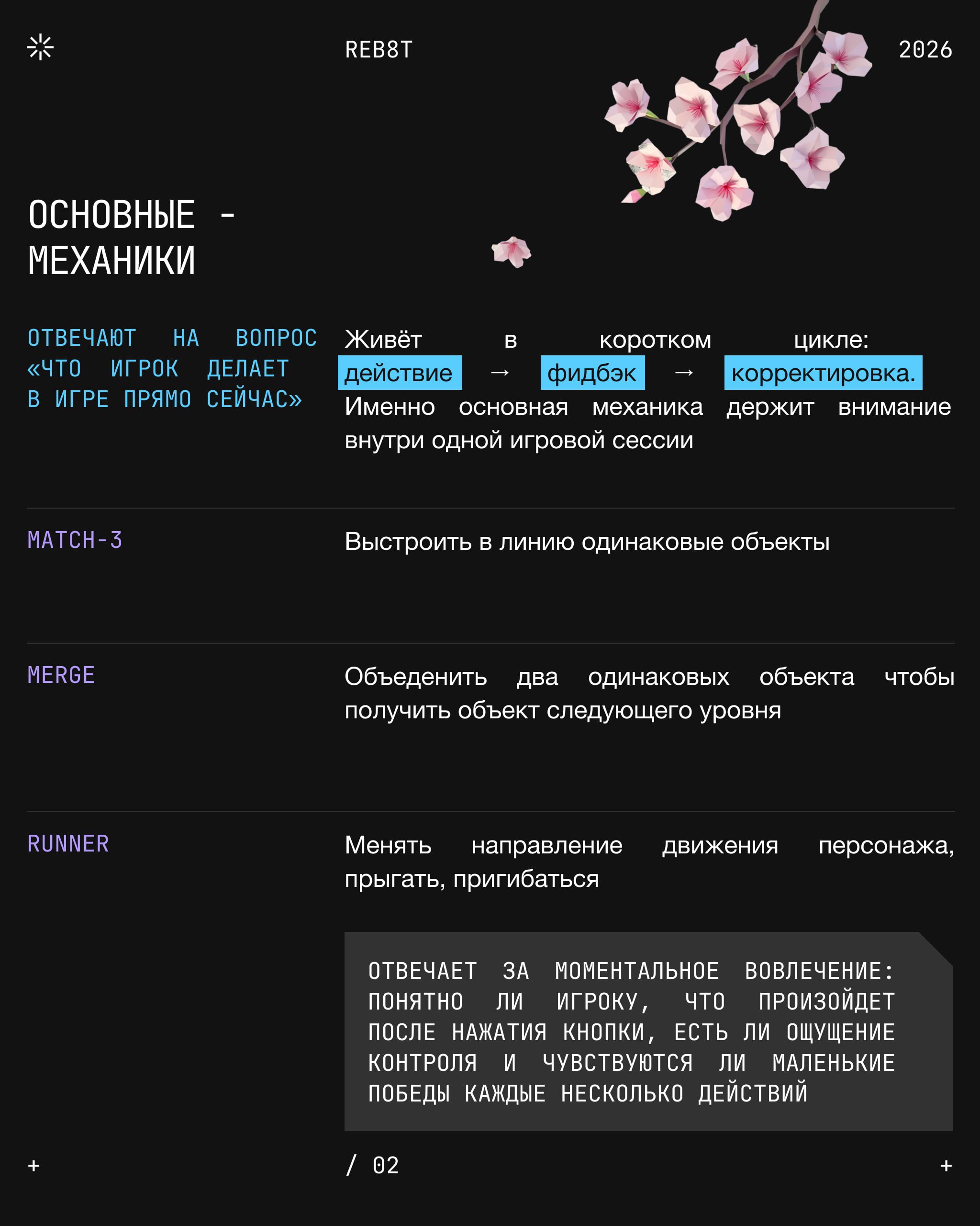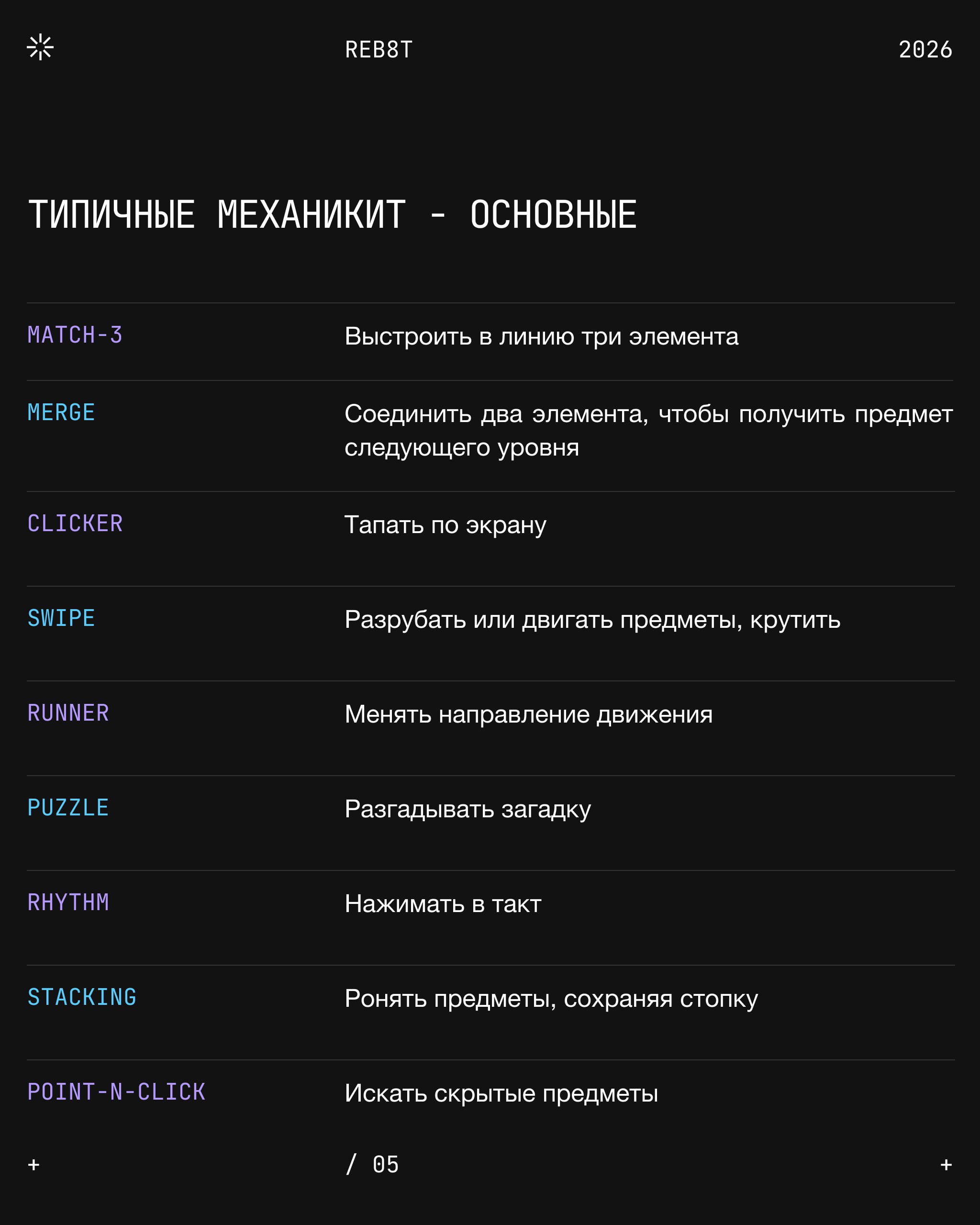 Это то, что игрок делает в игре для достижения цели: соединяет элементы, управляет персонажем, строит город. Она отвечает на базовый вопрос: «что игрок делает каждую секунду, когда ваш проект открыт?» Но для геймдизайнера механика — это ещё и набор правил, по которым эти действия осуществляются