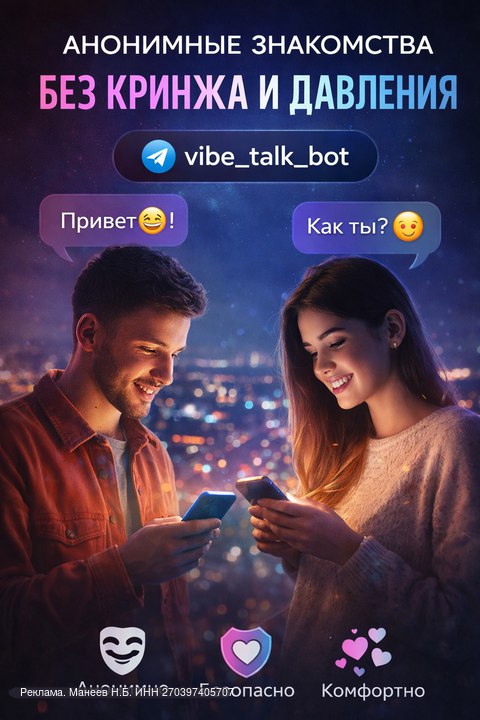 🤍 @vibe_talk_bot — это Telegram-бот для знакомств и анонимного общения, где: