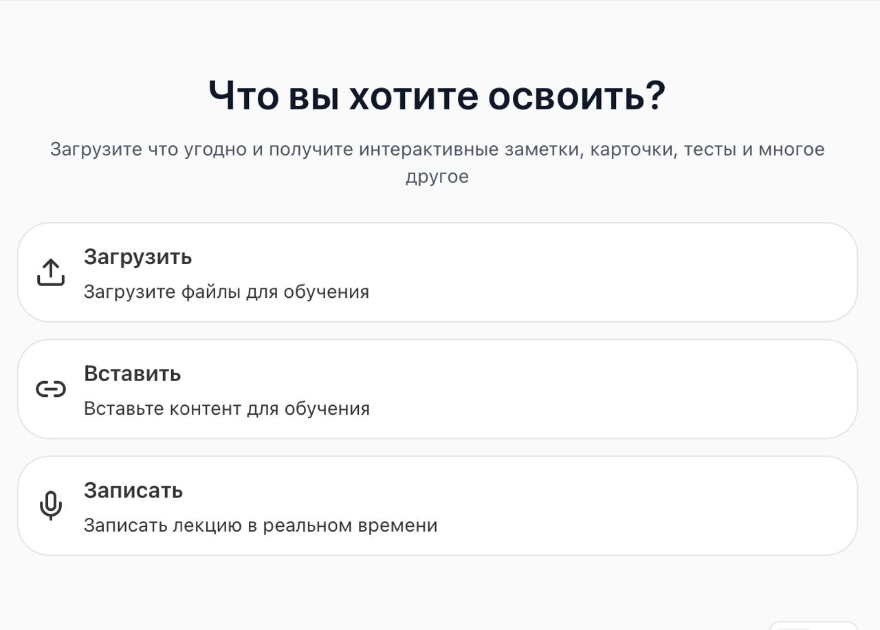 • ИИ создает карточки, тесты, опросы и задает вам домашние задания для закрепления знаний.
