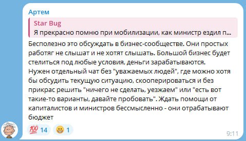 Бесполезно это обсуждать в бизнес-сообществе. Они простых работяг не слышат и не хотят слышать. Большой бизнес будет стелиться под любые условия, деньги зарабатываются.
