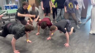 • В течение четырех часов команды из трех человек решали кодерские задачи, стояли в планке и отжимались.
