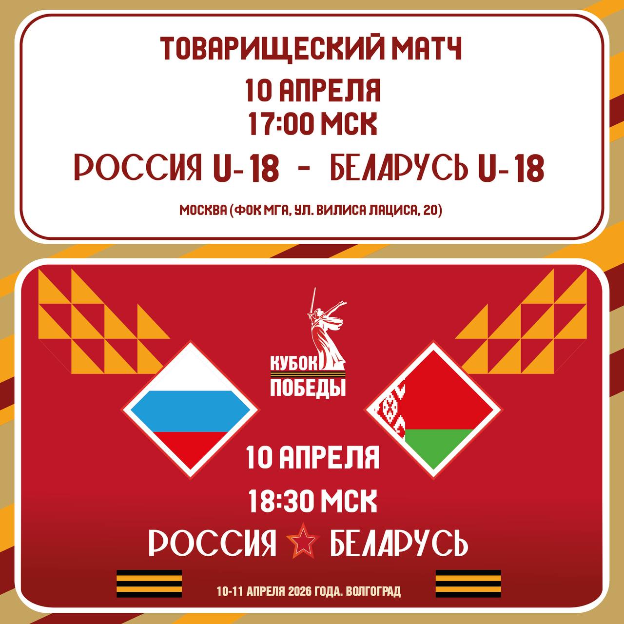Сегодня в Волгограде пройдет первый матч «Кубка Победы» между Россией и Беларусью. Встреча на «Динамо Арене» начнется в 18:30.