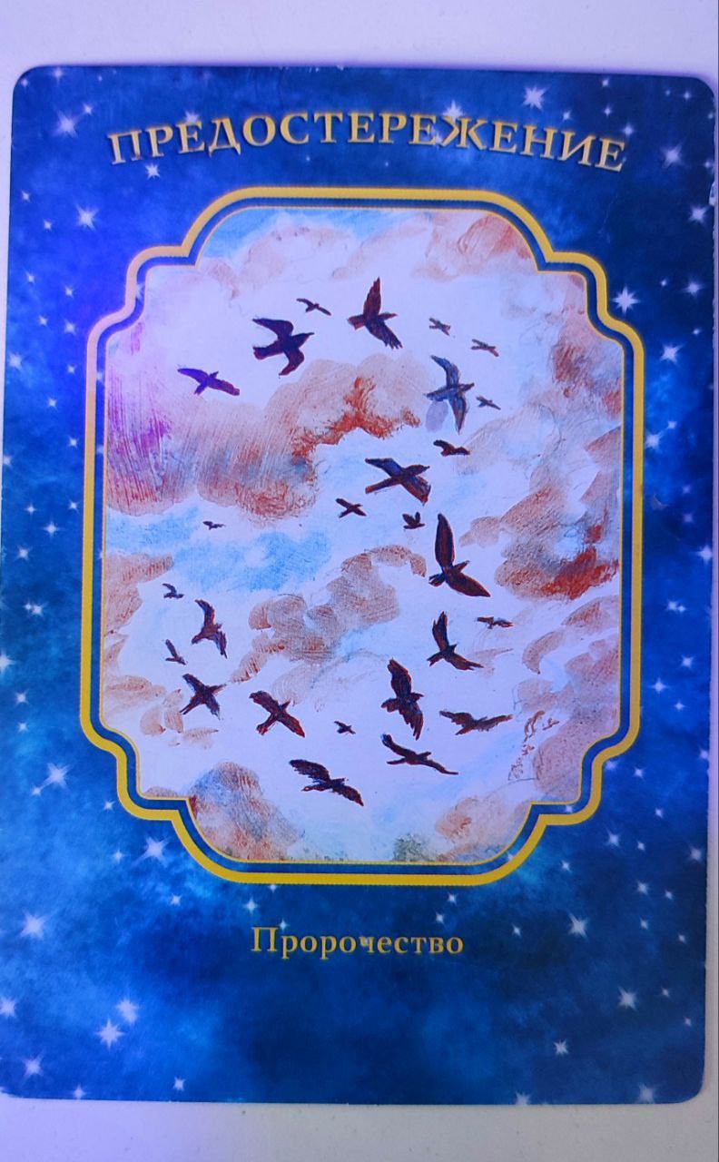 Эта карта показывает, что сейчас вы особенно уязвимы для энергии и эмоций. Архангел Михаил защищает вас от неприятной энергии или эмоций, но также важно, чтобы вы сами делали стремительные шаги. Например, избегайте ситуаций, где выражены гнев и/или чувство соперничества. Также держитесь подальше от баров, пабов и других заведений, где есть злоупотребление химическими веществами, что также притягивает слабую энергию, следуйте вашим природным потребностям, таким как знакомство и проведение времени с мягкими и добрыми людьми.